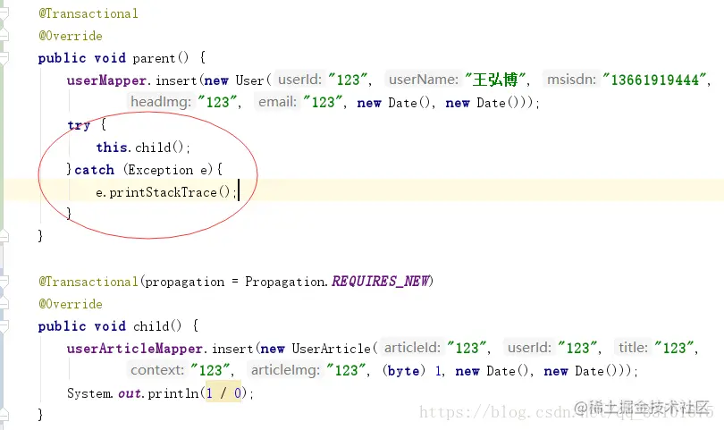 可能有的小伙伴要说了,child()抛出了异常在parent()没有进行捕获,造成了parent()也是抛出了异常了的!所以他们两个都会回滚?
