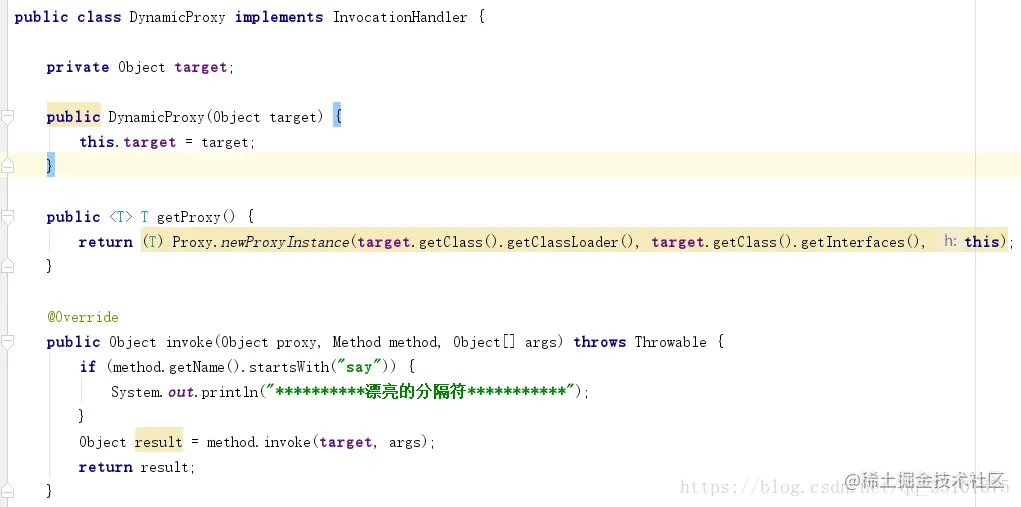 首先我们看一下一个简单的动态代理实现方式: