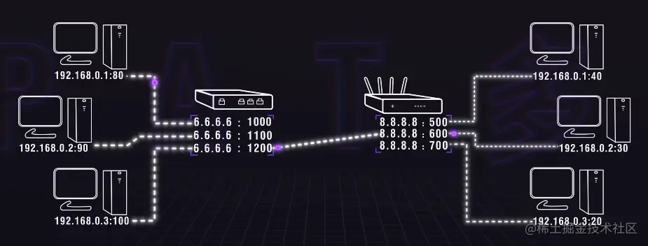公网IP就是6.6.6.6,这样就不需要每台设备不一样的IP了。只要给网关分配独立IP。