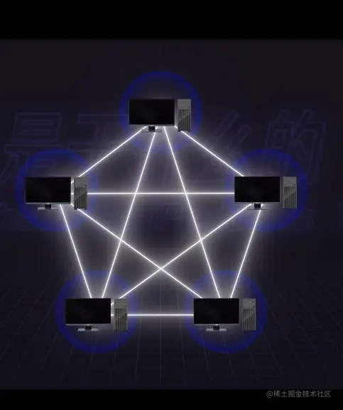 首先,互联网可以简单理解为数据共享,如果只有两台电脑,就只需一根网线就可以互联(数据共享),如果有多台,就需要多条网线把所有电脑点对点连起来,就会出现下面这种情况: