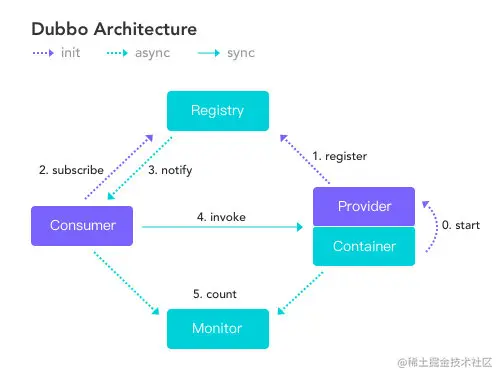 比如, Dubbo 总体分了以上这么几个角色,分别的作用是xxxx。