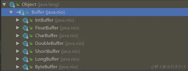 在 NIO 中,Buffer 是一个顶层父类,它是一个抽象类, 类的层级关系图: