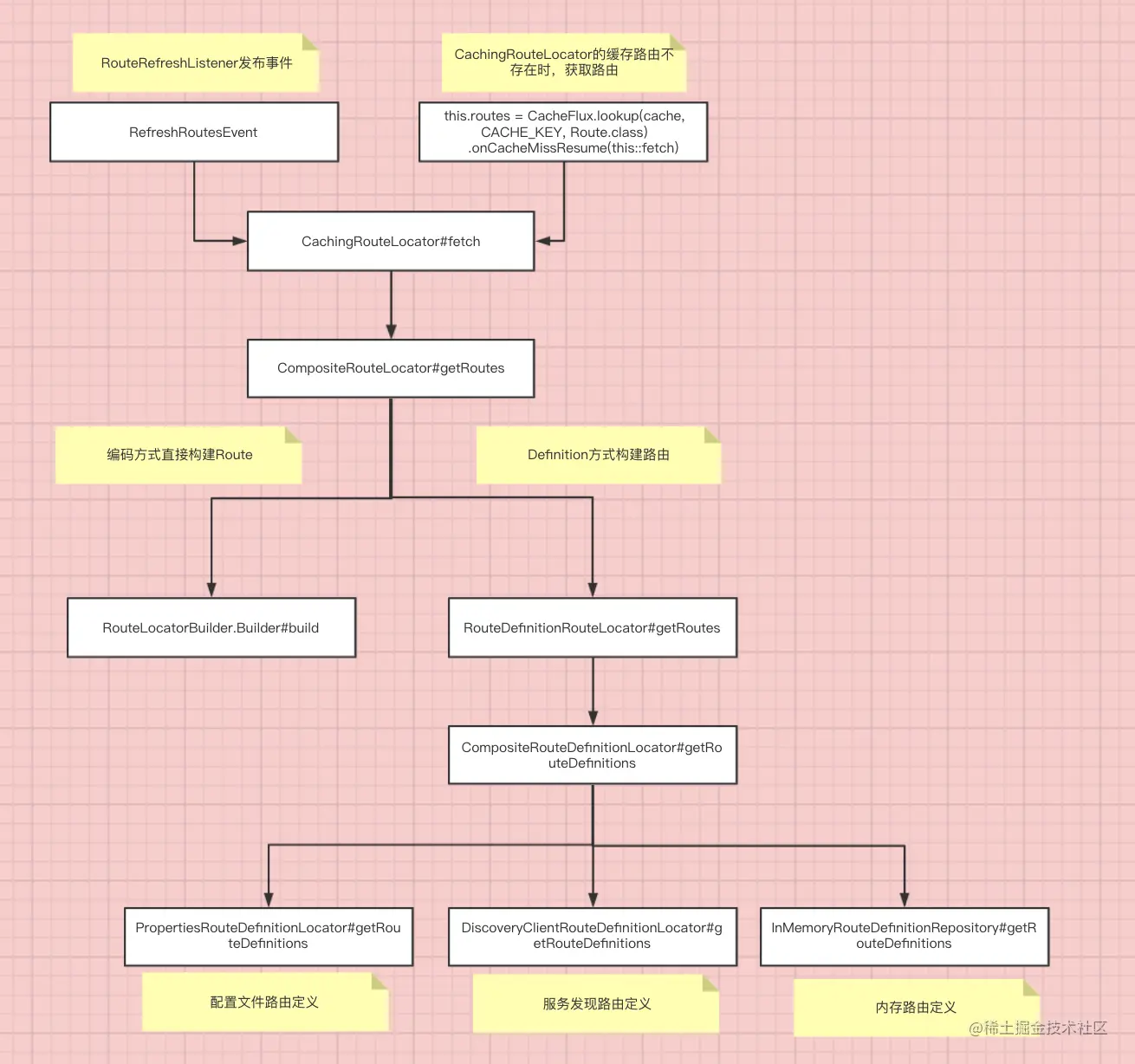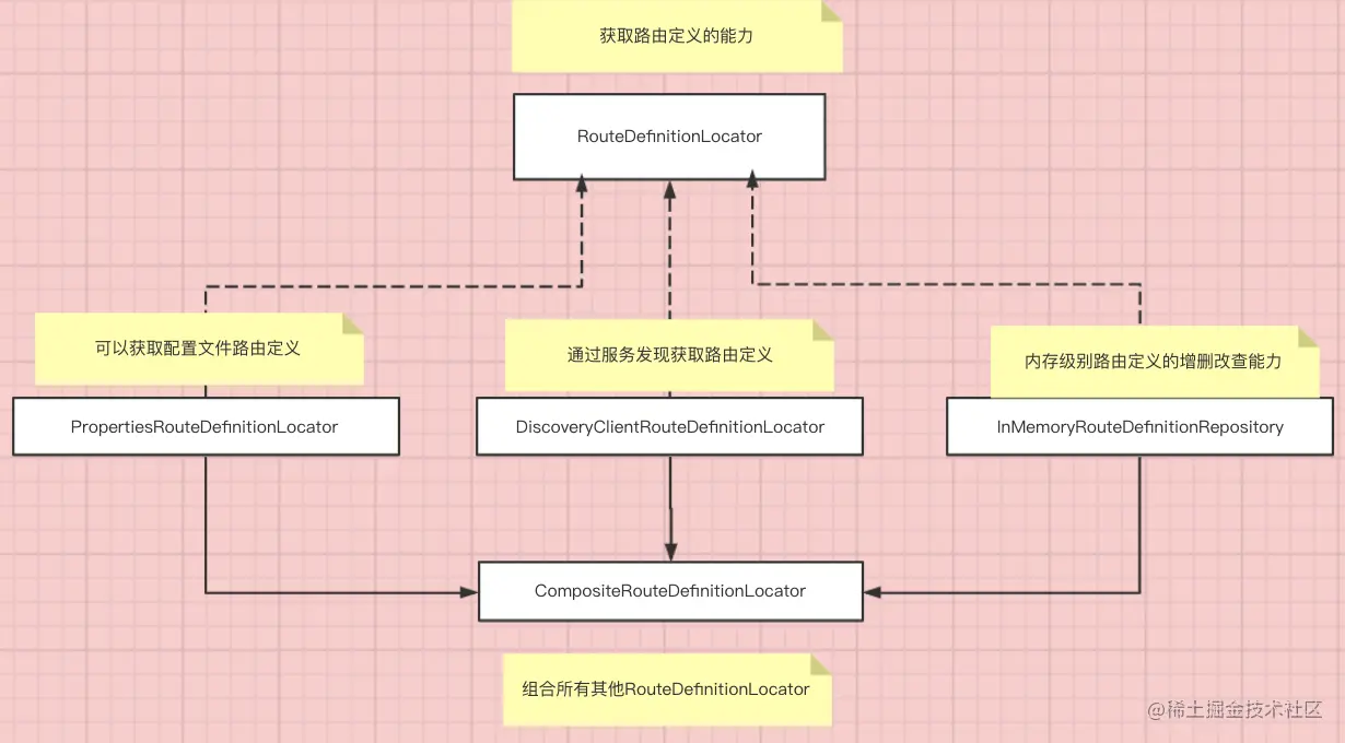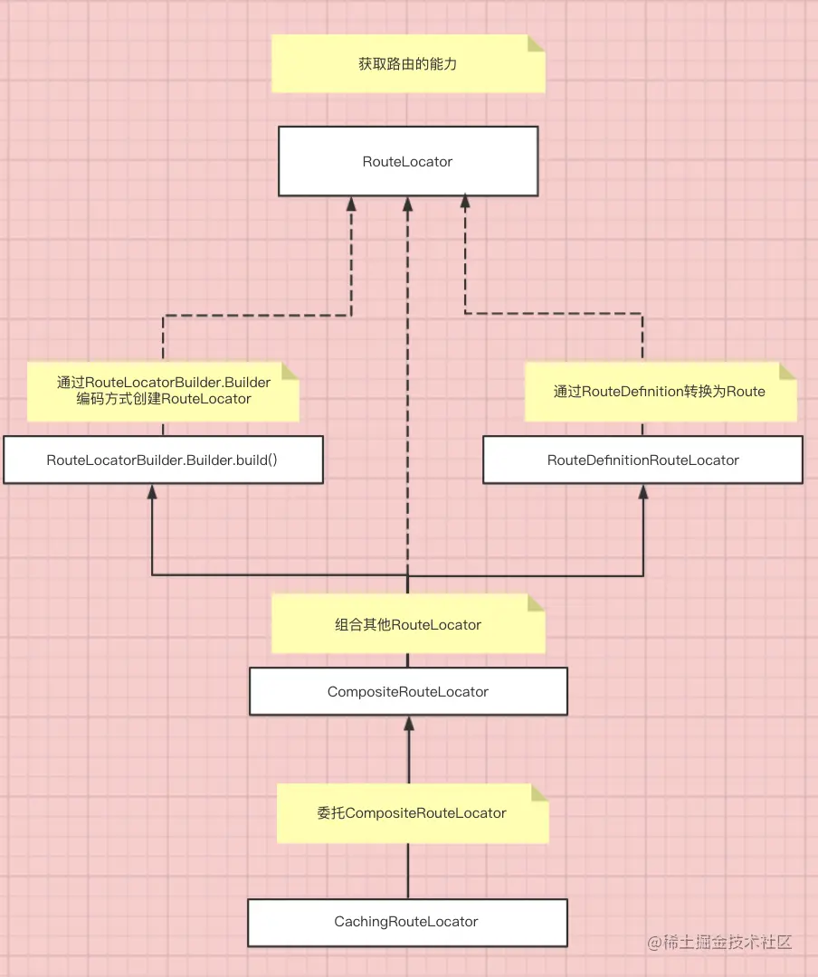 - 理清Route、RouteLocator、RouteDefinition、RouteDefinitionLocator的含义。最后对运行时实际暴露的对象只有CachingRouteLocator和Route。