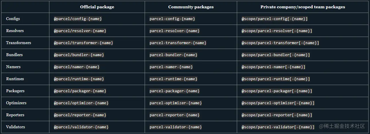 名称${name}必须是具有描述性的,和包目的相关的。用户必须可以从包(.parcelrc或者package.json#devDependencies中)的名字中了解到这个包简单地做了什么。