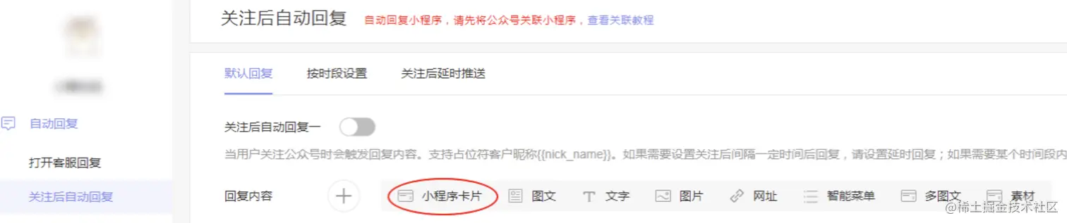微信公众号 小有同学 2020-10-12 358 阅读1分钟 一、公众号跳转到小程序 1、自动回复小程序 2、文章插入小程序卡片 3、自定义菜单/个性化菜单跳转小程序 4、模板消息跳转小程序 5、智能菜单(关键词回复小程序)