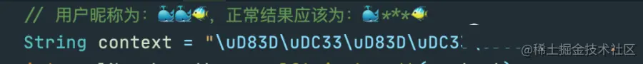 String context = "\uD83D\uDC33\uD83D\uDC33\uD83D\uDC20";