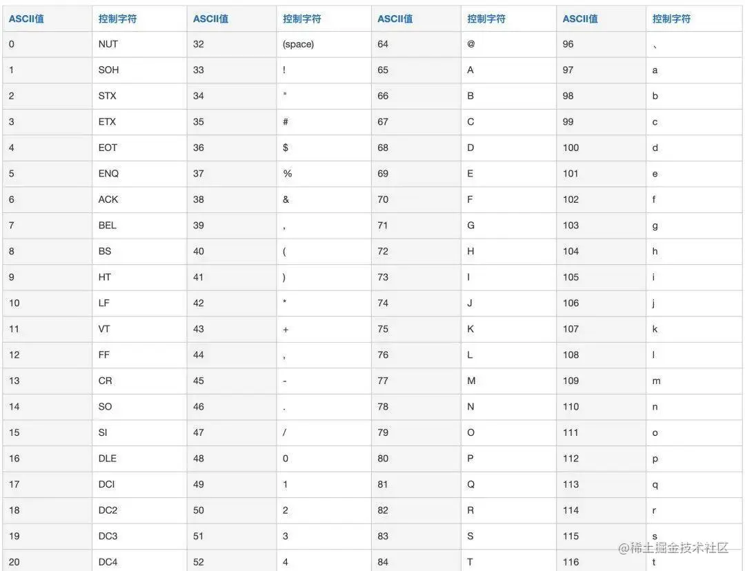 上面介绍utf8mb4时有提过unicode,介绍它之前我们也需要先提一嘴我们的老朋友:ASCII码