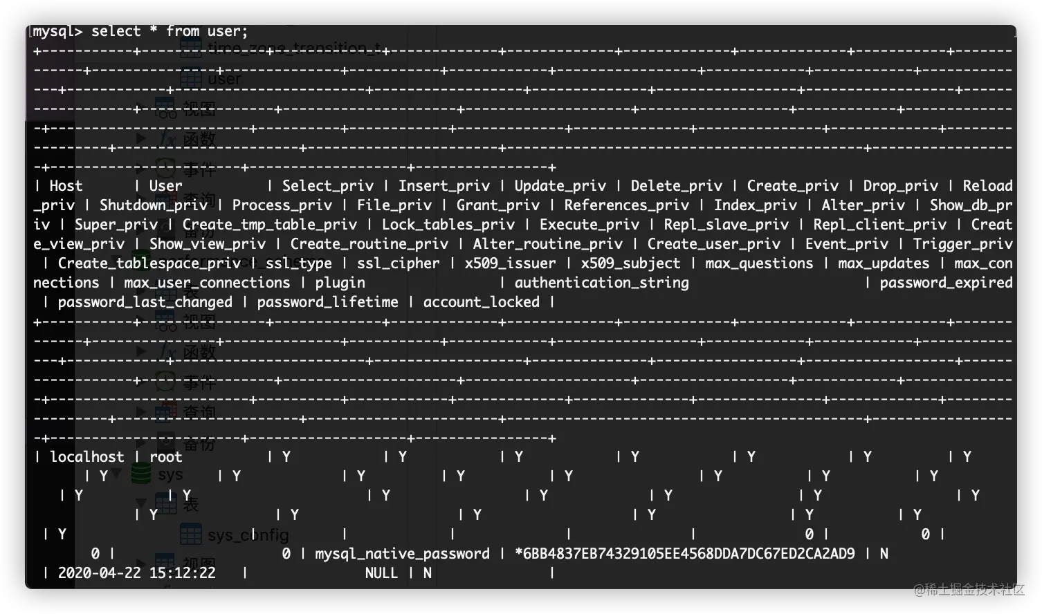 1、创建用户之后,数据库 mysql 中的 user 表中就会多一个用户。