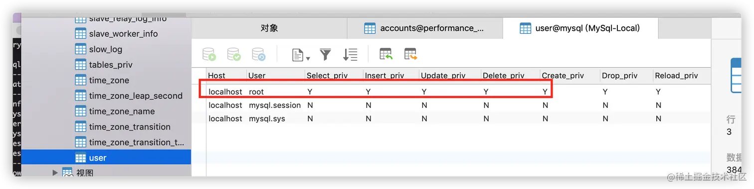 mysql 数据库管理系统中有个数据库叫做 "mysql" ,绝对不能删除!其中有个表 "user",就是存储了当前数据库系统中的所有用户信息,初始时只有一个用户: root。