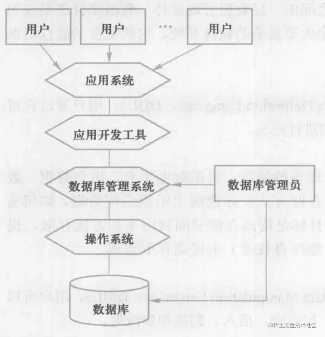 上图是一个完整的数据库系统的示意图。其中数据库提供数据的存储功能,数据库管理系统提供数据的组织、存取、管理和维护等基础功能,数据库应用系统根据应用需求使用数据库,数据库管理员负责全面管理数据库系统。