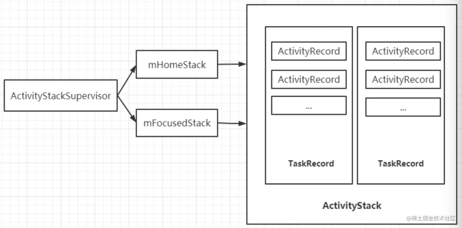 TaskRecord,内部维护一个ArrayList<ActivityRecord>用来保存ActivityRecord,TaskRecord中的mStack表示其所在的ActivityStack,startActivity()时也会创建一个TaskRecord