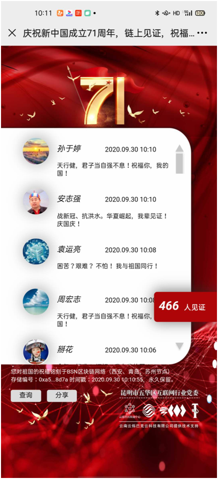云南省区块链中心诚挚邀请您参与此次链上见证祖国华诞活动,让我们一起祝福祖国永远富强、永远安宁。