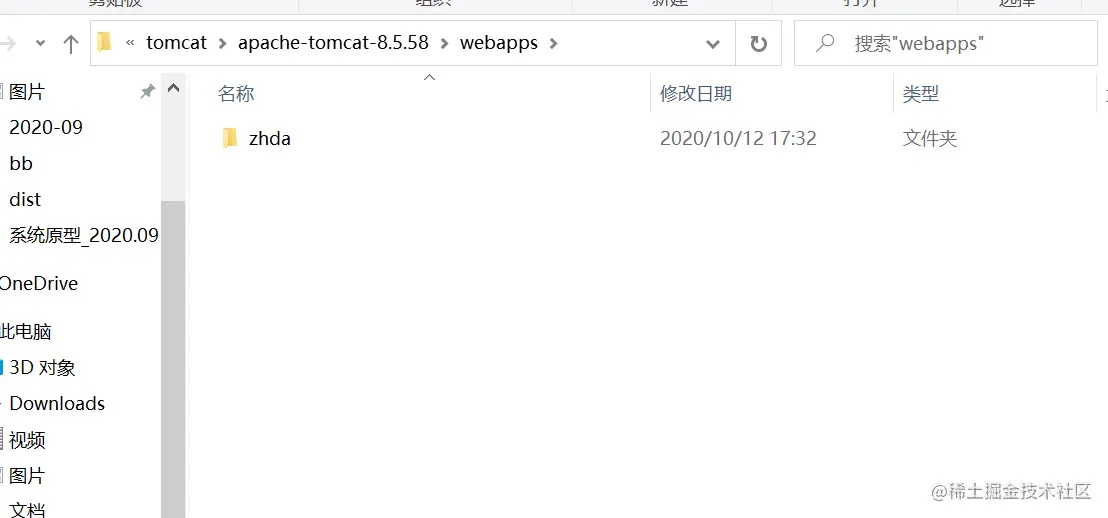 1、找到tomcat所在的文件夹,找到里面的webapps文件夹,点进去清空里面的所有东西,然后自己建个新文件夹,如图