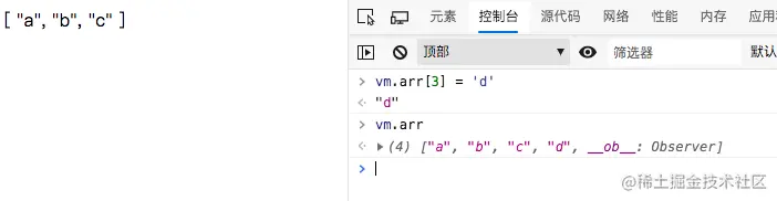 vm.$set(vm.arr, 2, 'd');