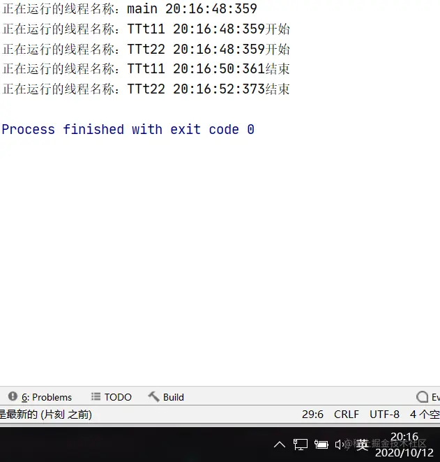System.out.println("正在运行的线程名称:TTt22 "+new SimpleDateFormat("HH:mm:ss:SSS").format(new Date())+"结束");