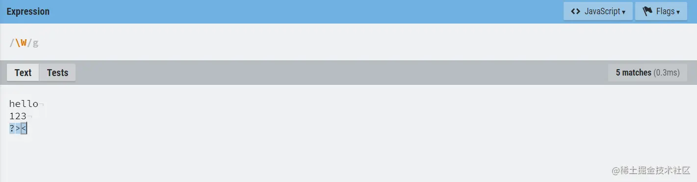 \W 匹配除数字和字母以及下划线以外的任意字符