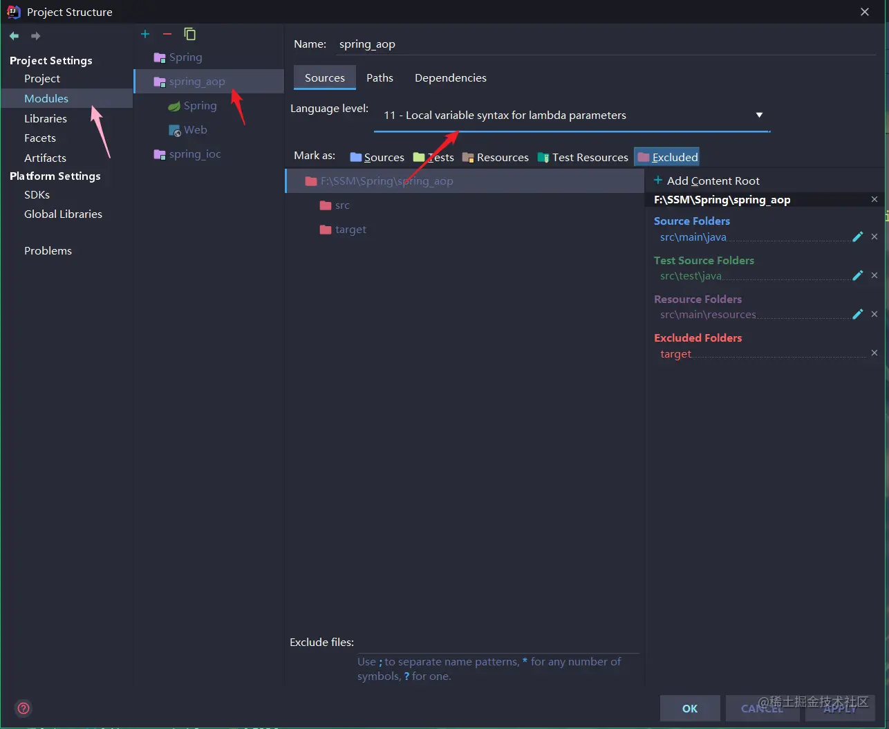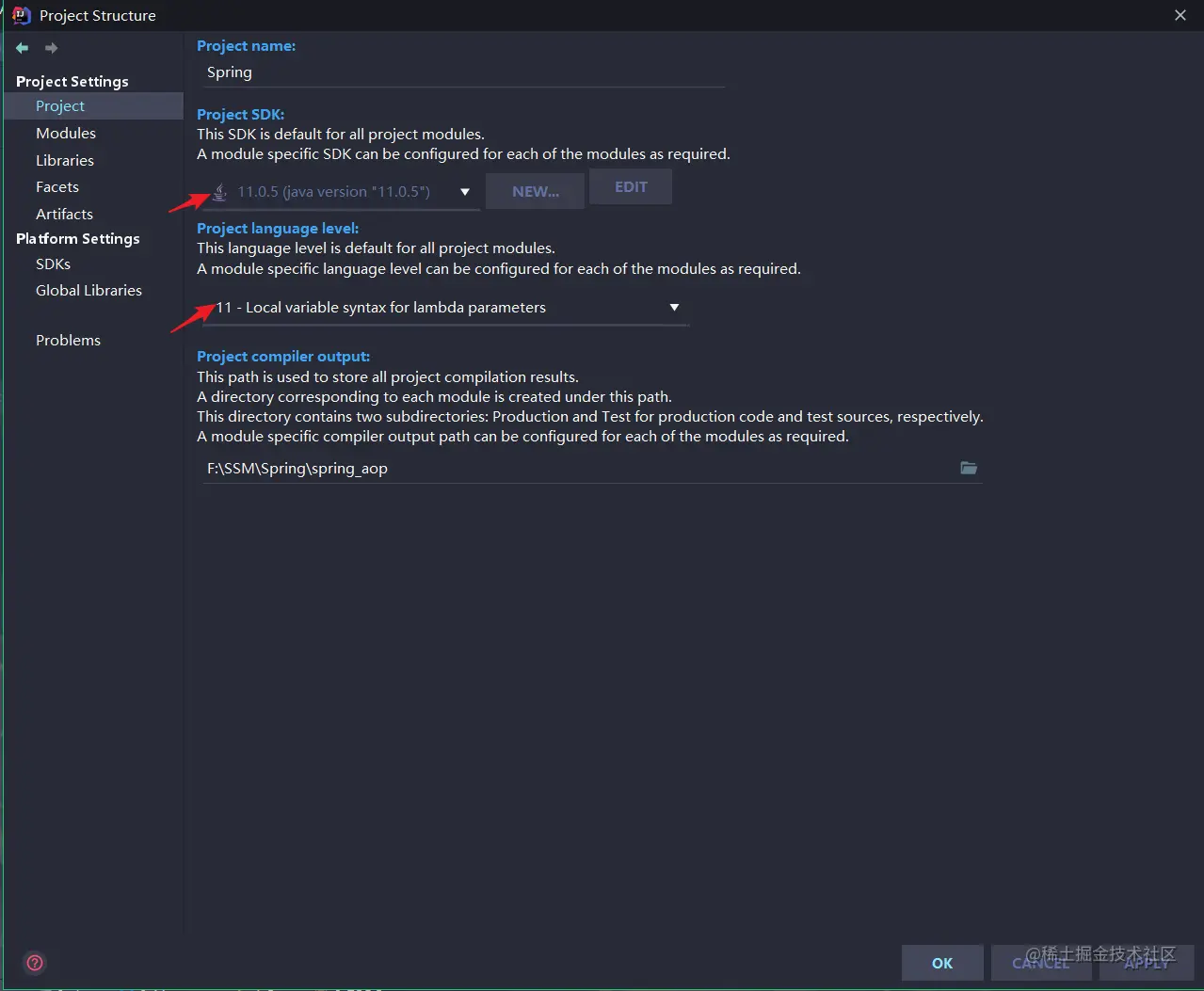 - 找到对应的模块,把 JDK 修改成和项目一样,application,ok