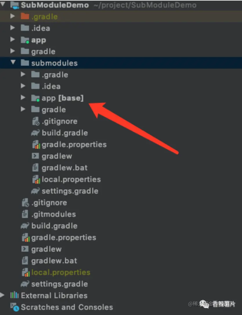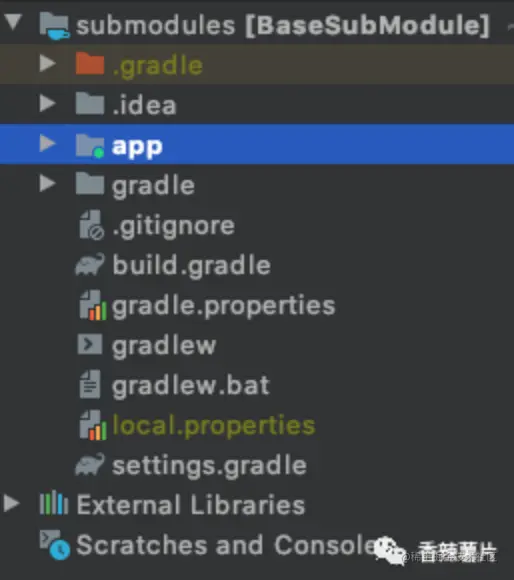 之后在build.gradle里添加应用即可使用submodule里的代码资源