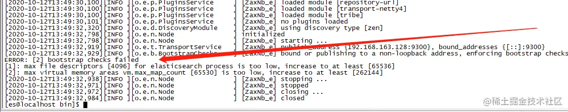 再次启动es,报如下错误