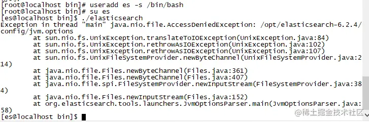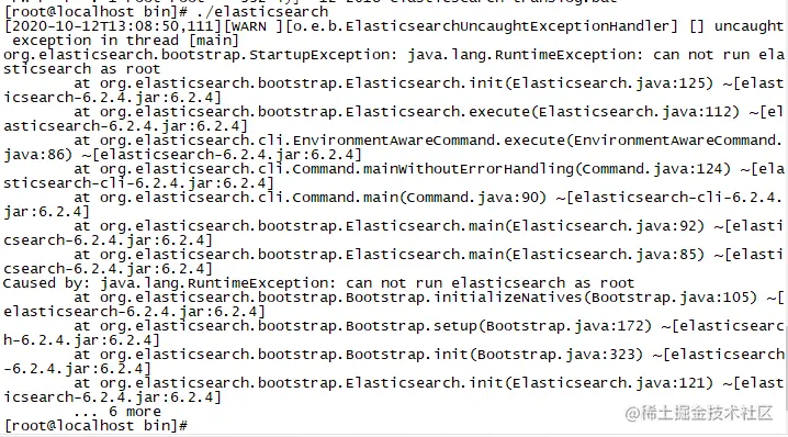 注:es不能在root用户下启动,必须创建新的用户,用来启动es;如果在root用户下直接启动elasticsearch,会报错,具体报错如下: