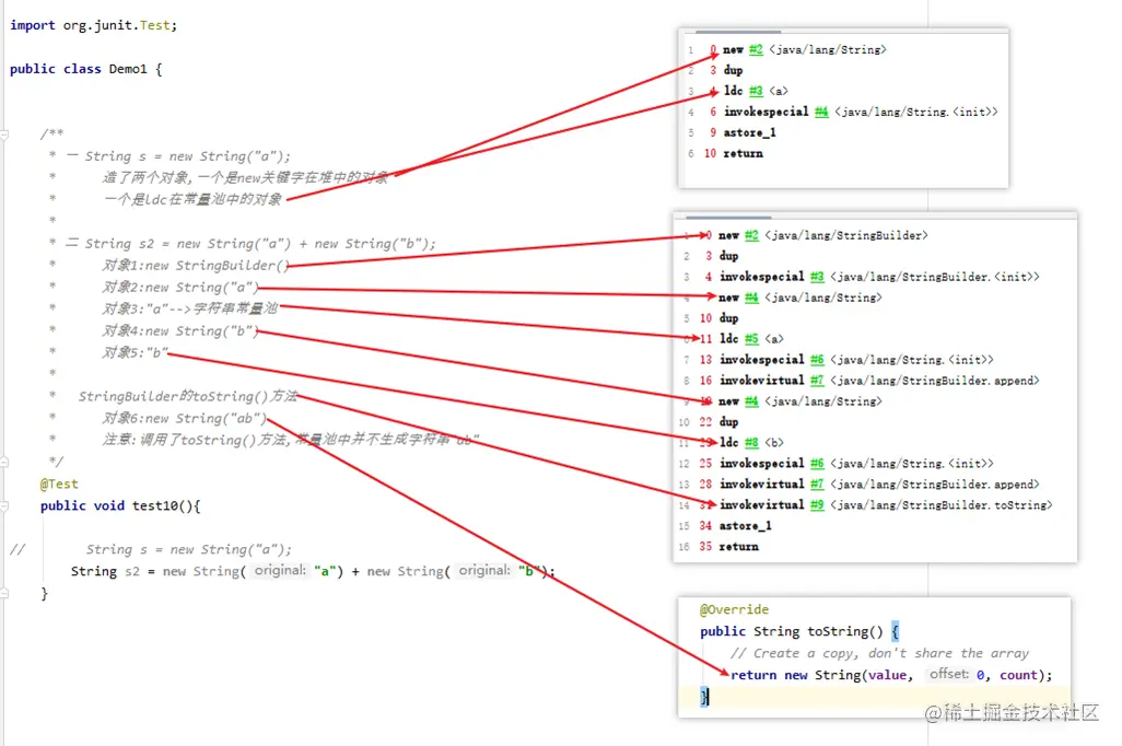 - 字节码指令:拼接操作通过 StringBuilder 的 append() 方法完成
