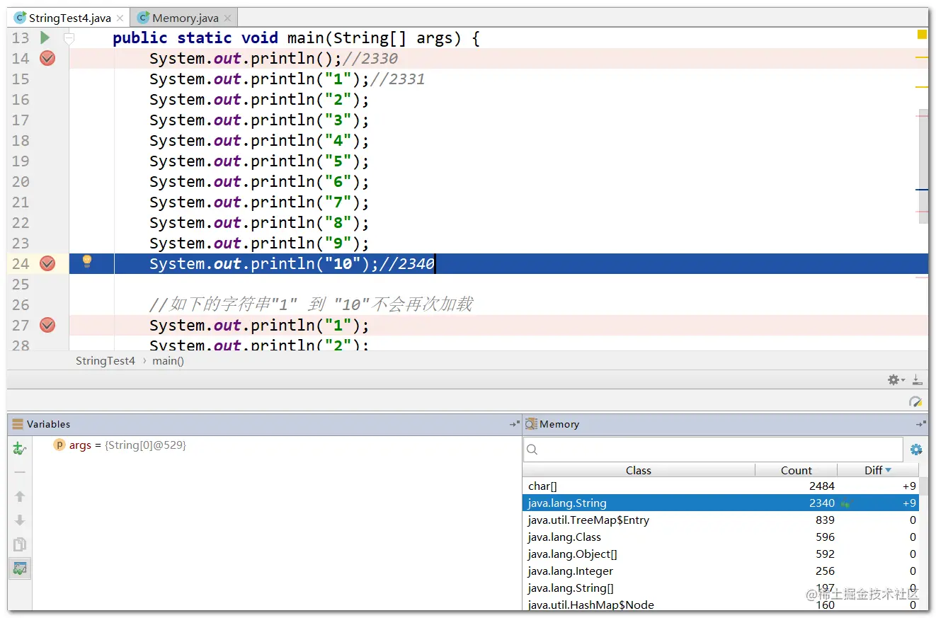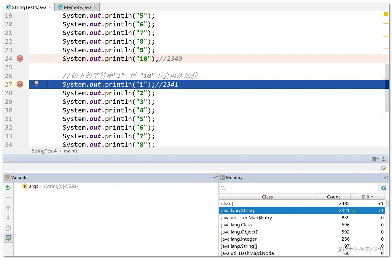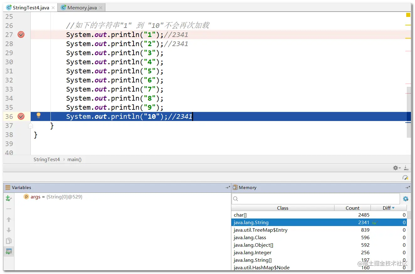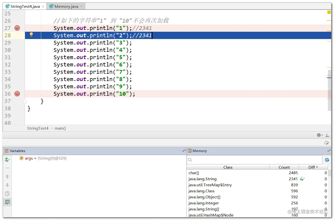 - 使用 intern() 方法:由于数组中字符串的引用都指向字符串常量池中的字符串,所以程序需要维护的 String 对象更少,内存占用也更低