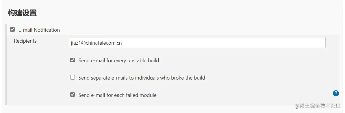构建设置 主要是为了设置在编译失败后自动发送邮件的接收地址