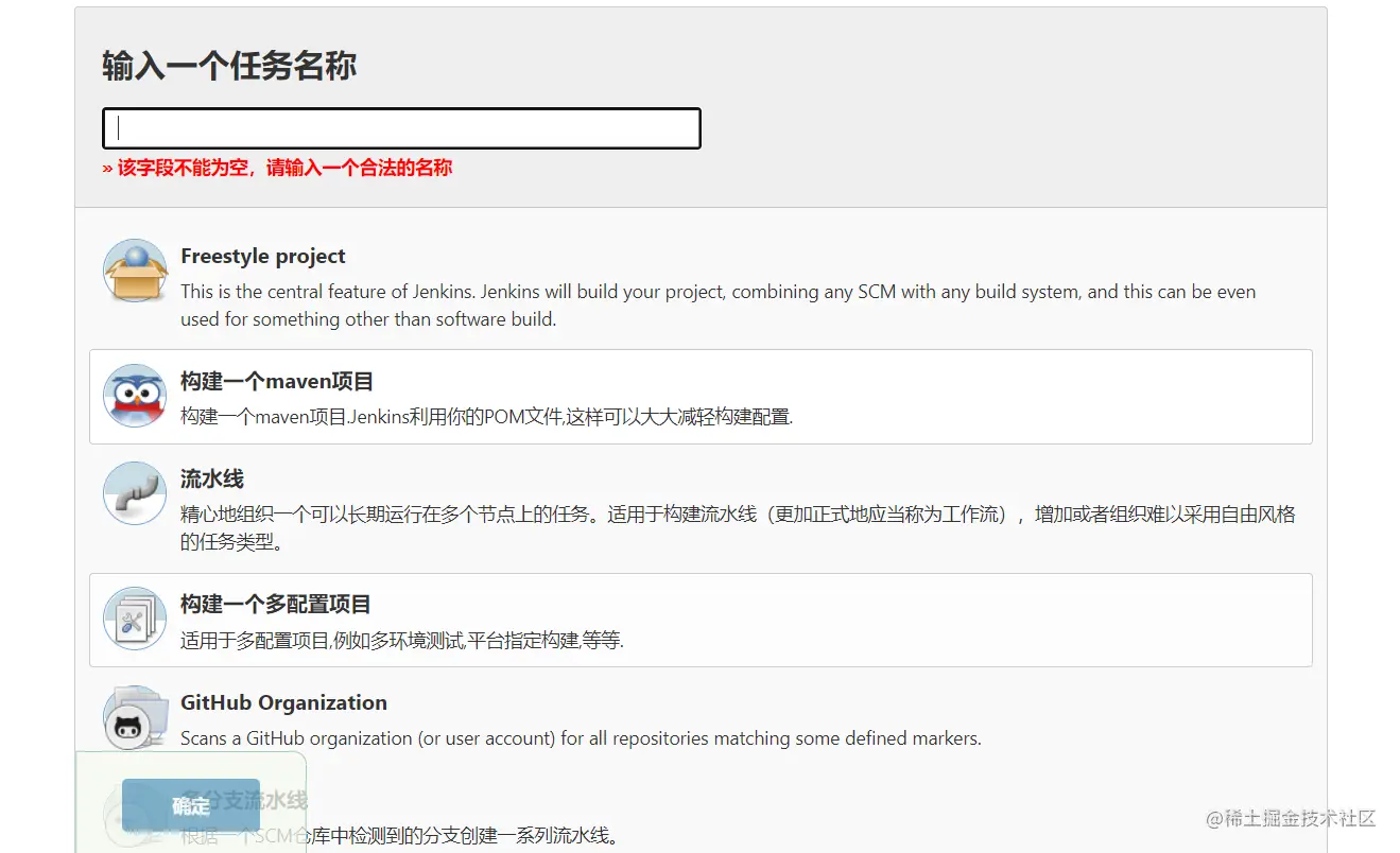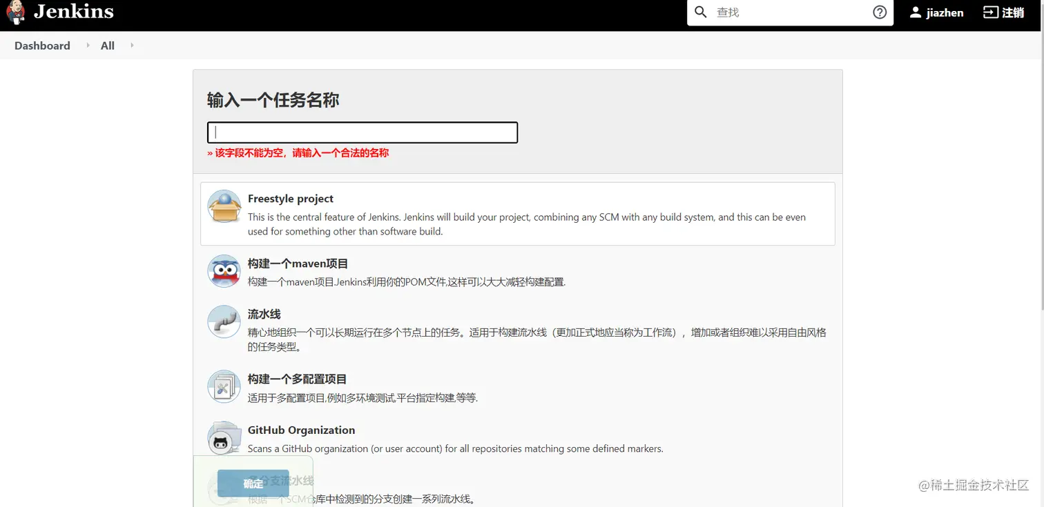 输入的任务名称就是这这个项目自动化构建时所生成的文件夹名,最好具备唯一性,我起名时会按照"项目名-前/后端-分之名"的格式来起名,个人感觉比较直观。