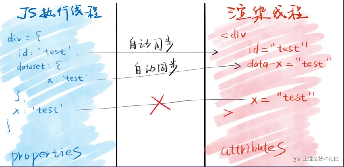 attribute属性渲染引擎中div1对应标签的属性,叫做attribute