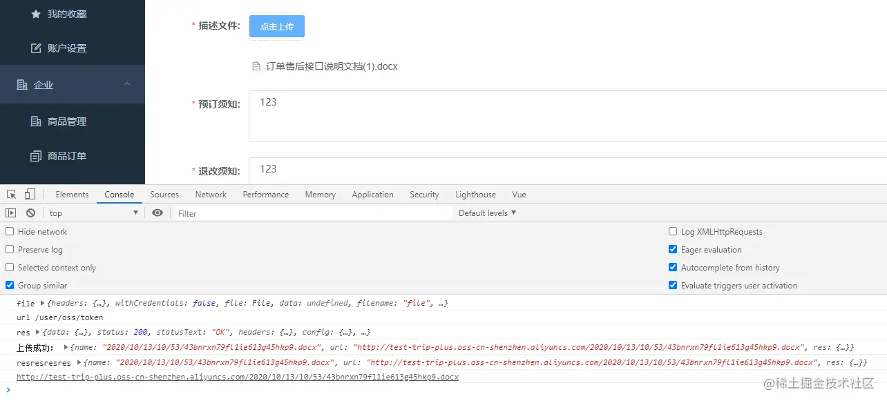 文件是直接通过前端上传到oss存储,文件路径和文件名在前端有一个按年月日生成规则。这个规则算法的后缀取的是mimetype。用的是element UI