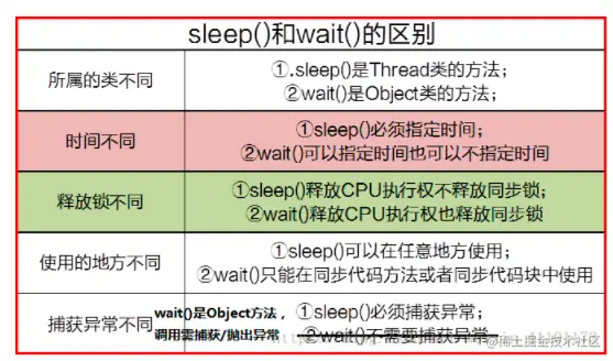 sleep和wait的区别: