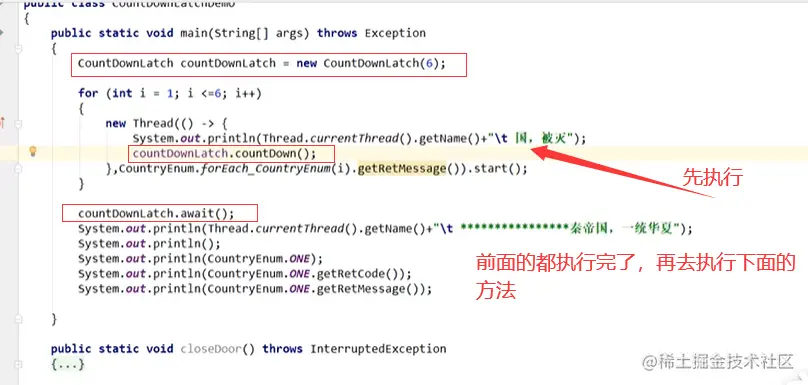 - countdownlach:只有前面的线程都执行完了,才可以执行下面的线程