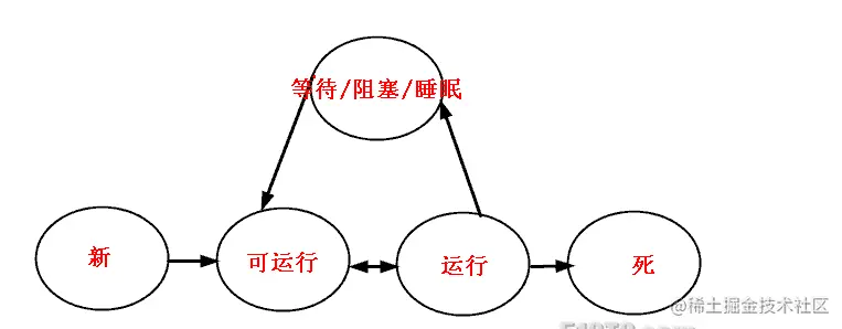 线程的一共有4种状态,分别是 新状态,可运行状态、运行状态、阻塞/等待/睡眠、