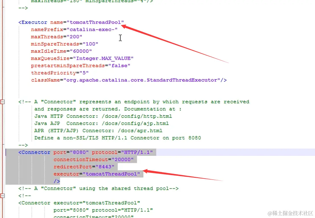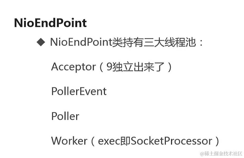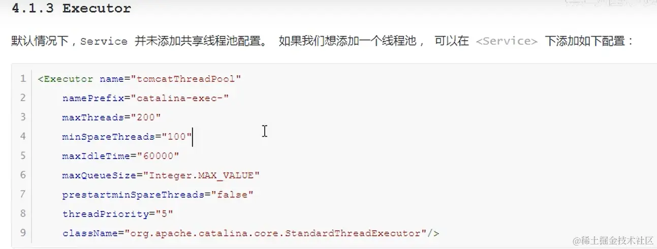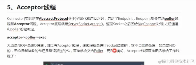 exec线程,工作线程,默认开启10个,接受poller丢过来的io。主要的工作是解释http协议,获取到request和response后,调用tomcat后端容器