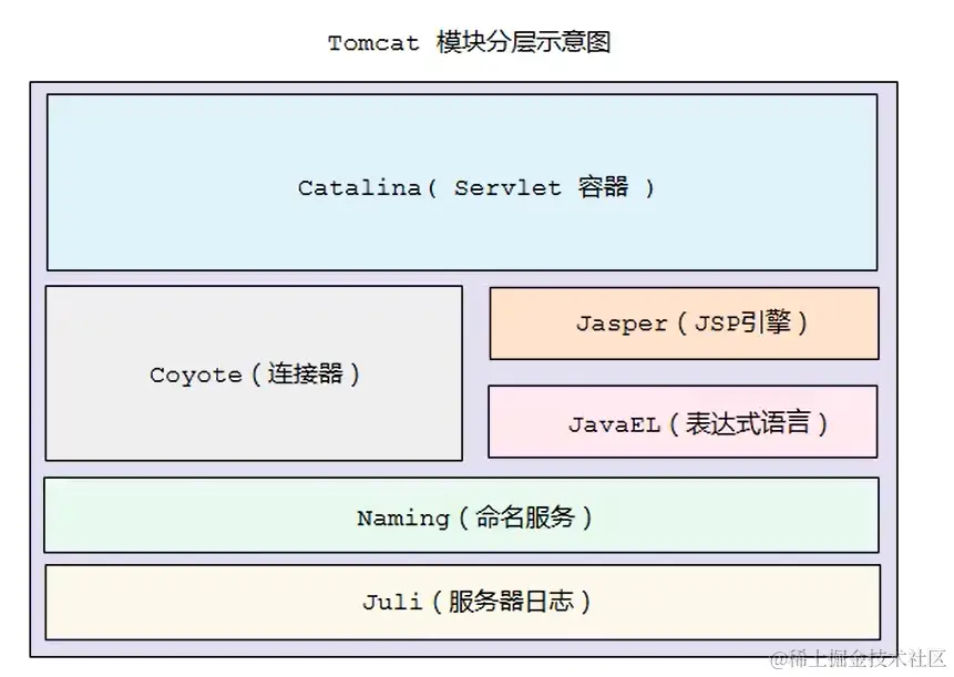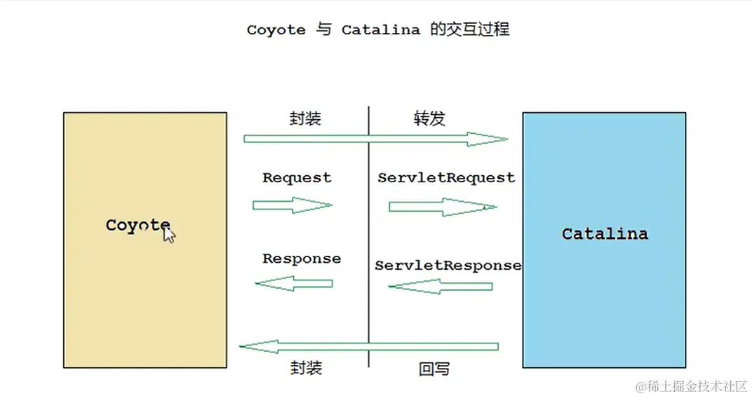 连接器部分分为coyote和catalina,其中coyote负责协议的解释和io的操作 sevlet的相关操作交由catalina去处理