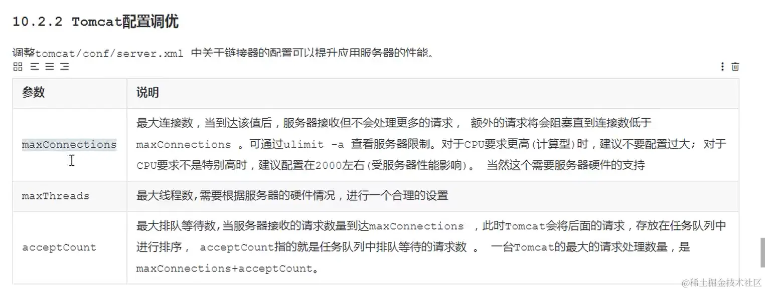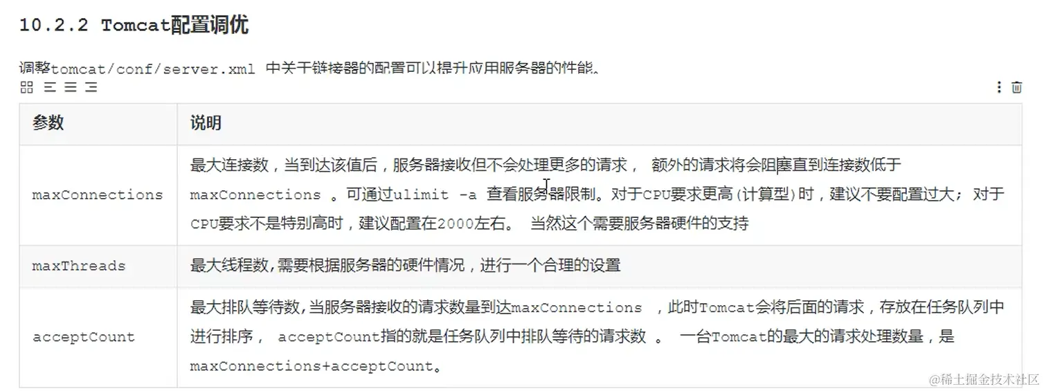 可以调节连接件数,共享线程池的线程数,jvm内存的调节