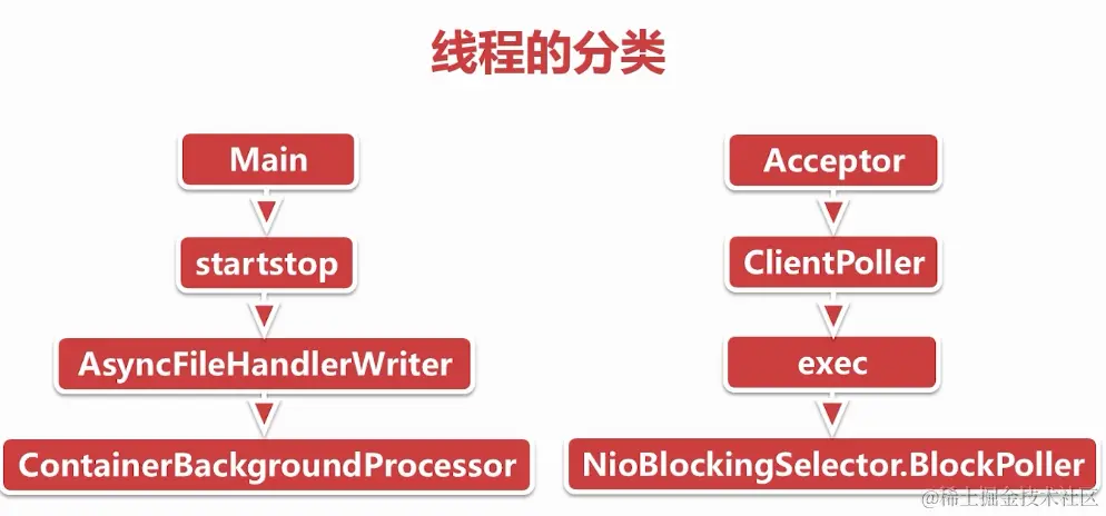 左边的是辅助线程,右边的是核心线程,最繁忙,决定了tomcat的性能