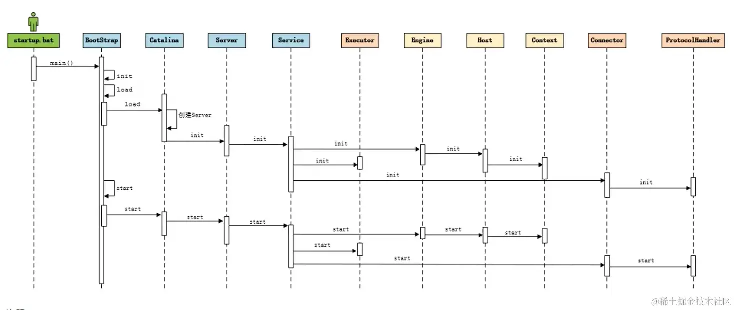 tomcat的启动流程(启动的主程序bootstrap),excutor是tomcat的共享线程池