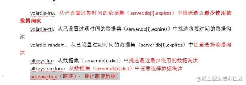 volatile-lru:只限于设置了 expire 的部分; 优先删除最近最少使用(less recently used ,LRU) 的 key。