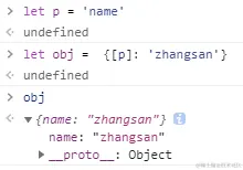 - 如何把变量作为属性值 let p = 'name' let obj = {[p]: 'zhangsan'}, 此时, 属性名为'name'