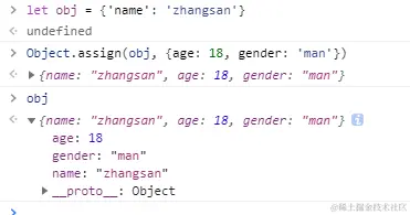 Object.assign(obj, {age: 18, gender: 'man'})
