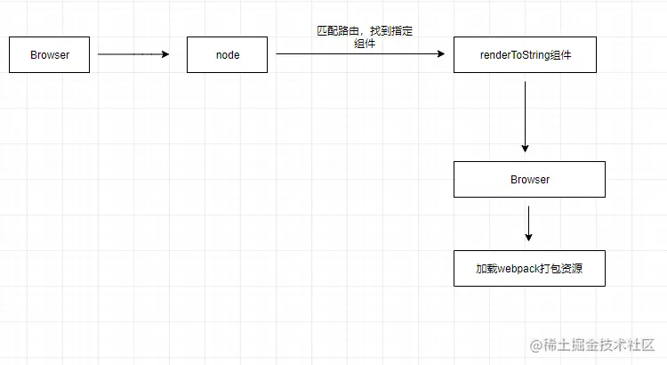 同构更像是在原有的react开发模式下,先把要渲染的页面通过renderToString转化成真实DOM,在浏览器中渲染了,然后通过加载打包的资源做后续处理;