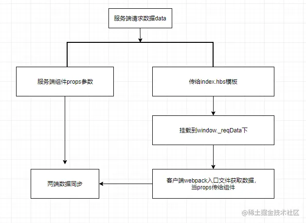 为什么要同步呢?刚刚上文也有提到过,同构的话,如果服务端通过renderToString处理的结果和客户端通过webpack打包的js所render出来的结果不一致就会报错。所以就需要保证在服务端和客户端使用数据是保持一致的。