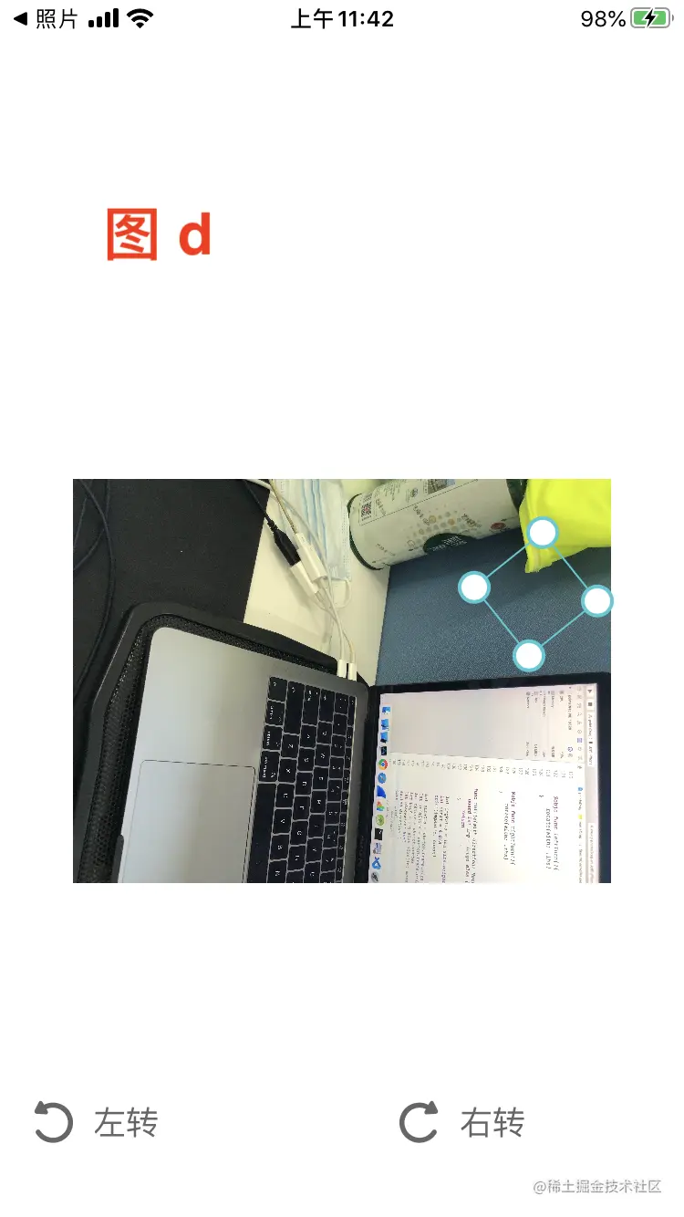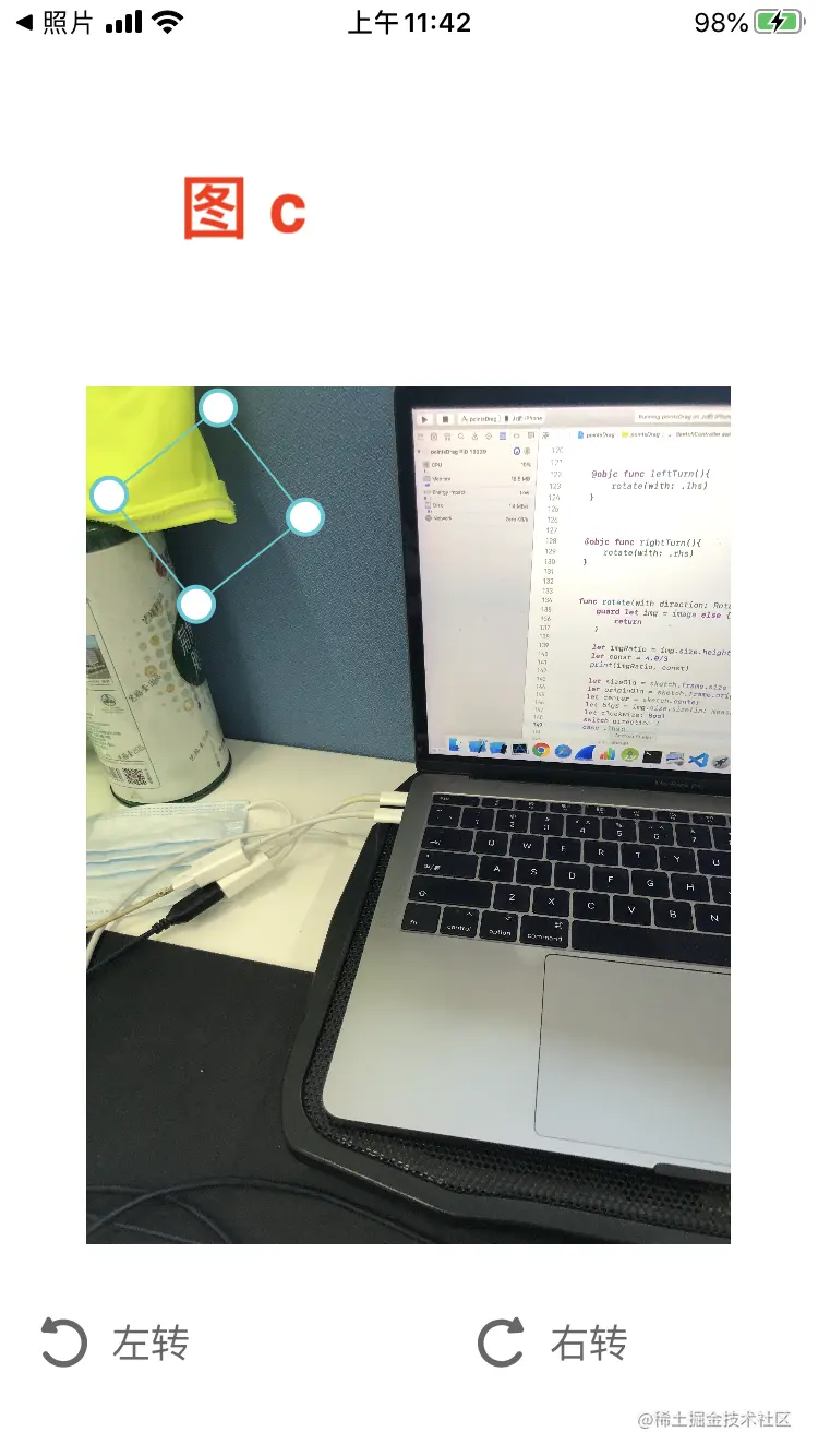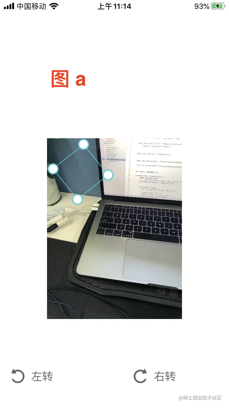 - 旋转选择区域视图,为了简化计算,旋转选择区域的 frame 与看到的图片贴合
