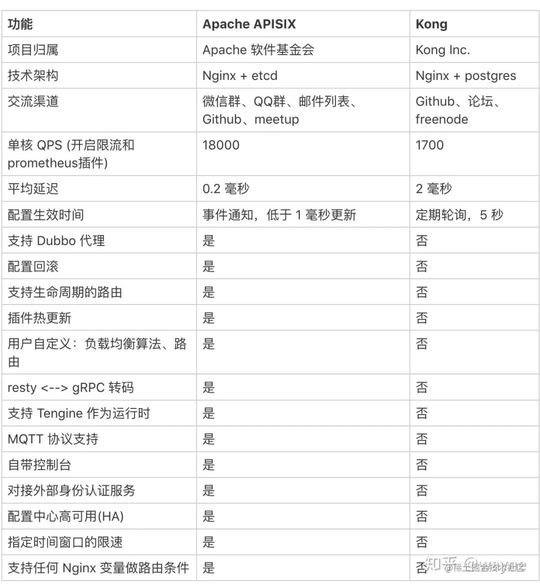 比较了一下,目前最火的应用是Kong,另一个国产的 APISIX 趋势也是很猛,且他们的技术栈雷同,所以我在选型上找到了APISIX的作者做的对比: