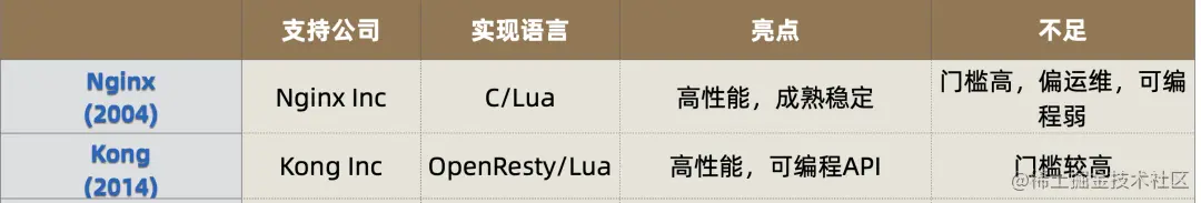 现代 API Gateway 越来越需要或者流行可编程网关了。上面介绍的都是基于 java 语言开发的可编程的 API Gateway。下面我们来聊聊非 java 语言开发的网关。从前面的架构图上看,我们完全可以将 NGINX 和 API Gateway 合并起来,他们的功能的重合点自然消除了,也能降低架构的复杂性和运维成本。