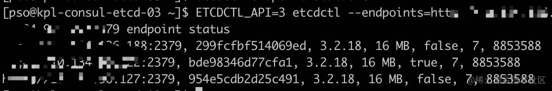 http://10.xx.xx.3:2379, 954e5cdb2d25c491, 3.2.18, 2.1 GB, false, 7, 8701687