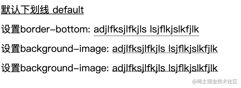 使用border-bottom模拟出来的下划线可以自定义颜色、线条宽度和线的形状。但是线与字之间的距离或者说空隙很大