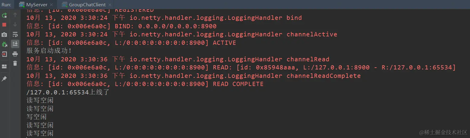 System.out.println(ctx.channel().remoteAddress()+"上线了");