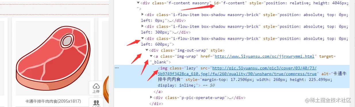然后查看网页源代码发现这个懒加载图片的链接地址是存放在data-src当中的 写对应代码 image_list = tree.xpath('//div[@id="f-content"]/div/div/a/img/@data-src') 一个简单的爬虫就实现了 各位想要爬取自己想爬取网页的图片的话 理清目录结构 根据情况修改一下就可以了